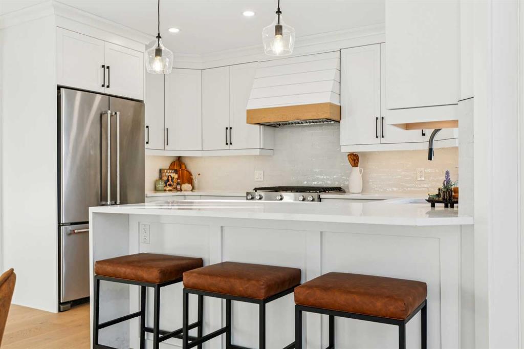 4. THE UPPER FLOOR: So many renovations focus only on the main floor, not the case here! Smartly, the upper floor has been reconfigured to create a massive bonus room/media room/entertaining space complete with wet bar while taking advantage of the amazing tree-lined views out the back windows. Along with the bonus room, the King-sized Primary retreat is perfectly appointed with 5-piece ensuite and large walk-in closet while two other well-proportioned bedrooms share the 4-piece adjacent bathroom with dual sinks.